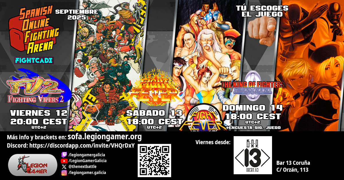 Viernes 12 20:00: SOFA 428 - Fighting Vipers 2 (Disponible participación presencial desde Bar 13 A Coruña)